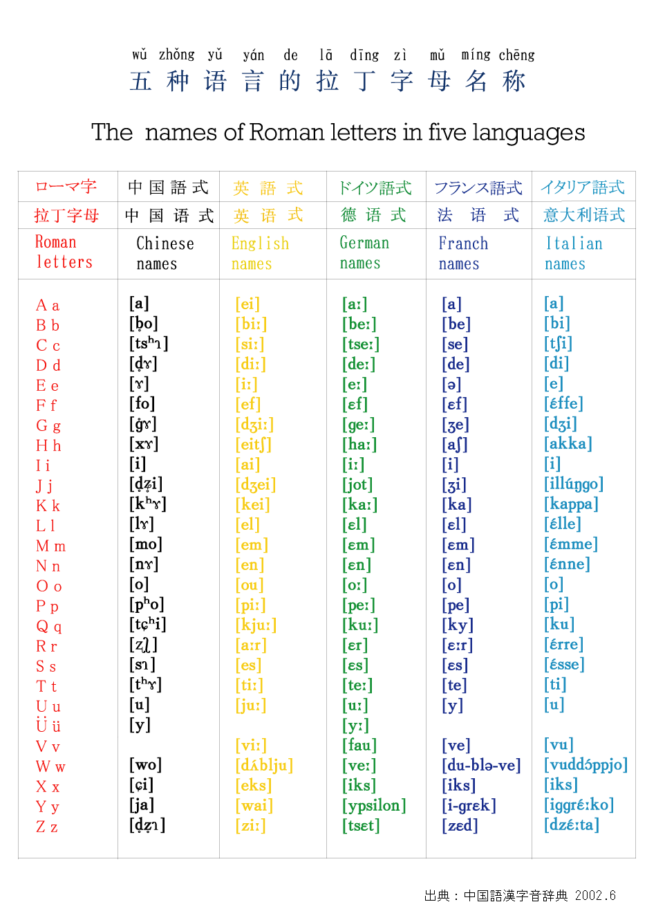 1 b ローマ字名称の五つの例