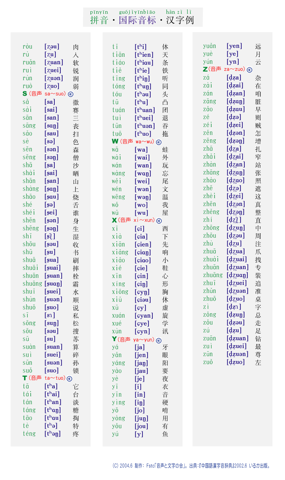 2ABC順中国語基本漢字音の一覧 P3/3(漢字音rou〜zuo)